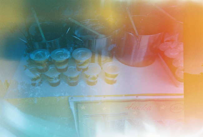 I took these 2 photos with an old (but never before used) 35mm point and shoot camera. A third way through the film roll, I accidentally dropped the camera and was forced to rewind the film and start over, in hope that rest of the roll could still be salvaged. So these two photos are probably accidental double exposures that happened afterwards. All the other photos came out fine and "normal", but the crazy colours in these two make these my favourite ones out of the bunch. This makes me want to create more double exposure photos... on purpose.